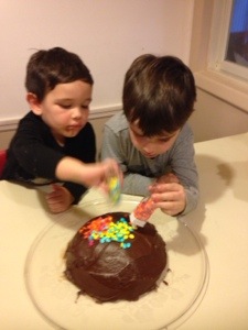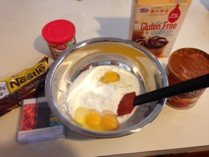 I used my kitchen aid stand mixer. I put the avocados in first and mixed them until smooth. You could blend them in the blender. Then I added all the other ingredients except the chocolate chips and mixed them together. I stirred in the chocolate chips. Put the whole mixture into a greased pan. Bake at 350 for about 40 minutes.