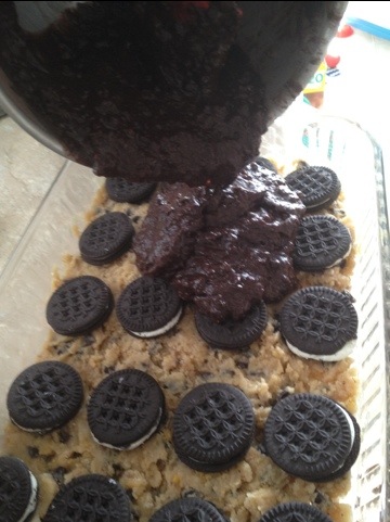 I found this recipe on the internet and thought I could make these gluten free! A blog called Kevin & Amanda first published this recipe in May 2011 and called them the Ultimate Chocolate Chip Cookie n’ Oreo Fudge Brownie Bar chip-cookie-n-oreo-fudge-brownie-bar.html. They were crazy enough to turn these into a hot fudge brownie sundae, which I may just have to replicate sometime. Trust me you’ll know when I do because I’ll be blogging about it. I believe it was the Londoner that coined the name “Slutty Brownie” in her June 2011 blog post in which she explains that they are called slutty brownies “because they are more than a little filthy and oh so easy”. Mine are gluten free but yours don’t have to be.