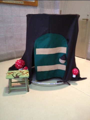 This is the gnome house tent that I made with a whole lot of help from my mom and my stepfather. The frame is made from two hula hoops and PVC pipe. I will post a link to the website I got it from. I will also give my own detailed instructions in my own post.