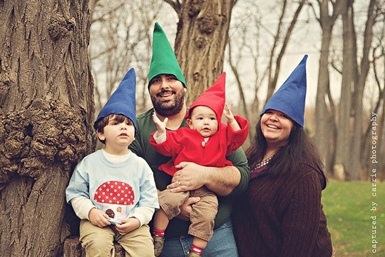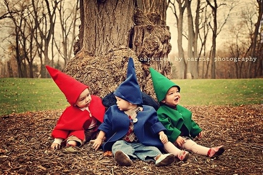 Gnome cousins! My son has twin cousins that are three weeks older than him. The idea of the three babies in gnome costumes was party of the inspiration for this party.