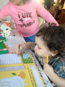 For the main activity for the birthday party I set up a real live Blues Clues game. Each kid got a notebook and a crayon when they arrived. I placed the clues and timed them strategically so that the last clue would come just before cake time. The first clue was a clock, the second was a candle, and the third one was a picture of the birthday boy. The kids loved it. It kept them busy all afternoon. They couldn’t wait to set up their own game when the game was finally done which led to even more fun.