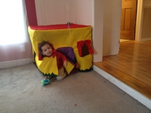 I made the blues clues house out of felt and used a hot glue gun to put it together. I used the measurements of my table to determine the measurements of the tops and sides. Excluding the table the materials for this project were less than $15.