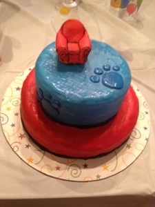 My kids are huge Blues Clues fans. This year for my son Gabriel’s second birthday we decided to make his dreams come true and have a Blues Clues themed birthday. The kids had a blast and the grown ups are still talking about it. I made a Blues Clues cake, a card table Blues Clues house and dressed my kids up as Joe, Blue and Steve.